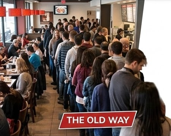 Customers spend valuable time standing in physical queues instead of doing something productive.